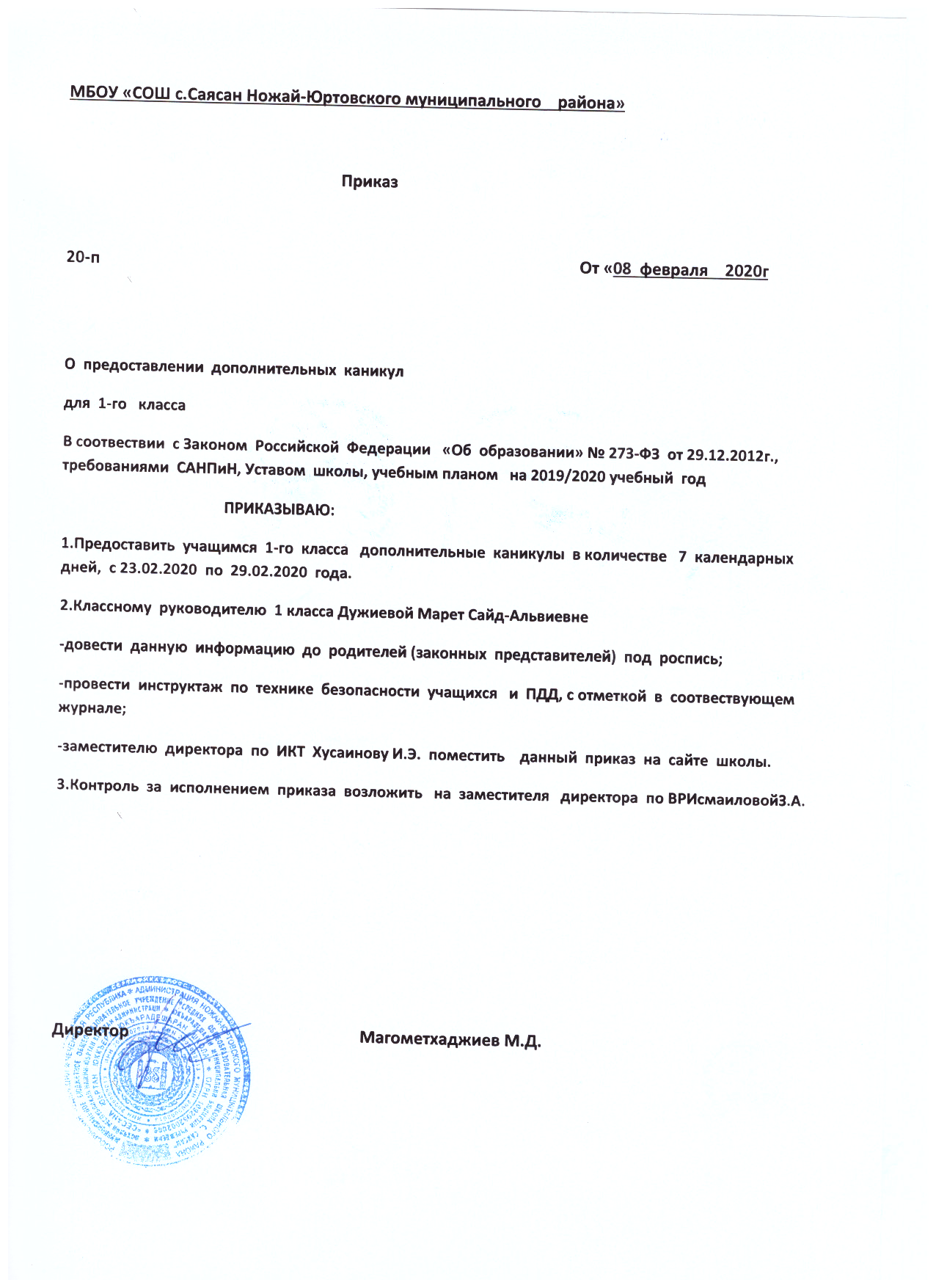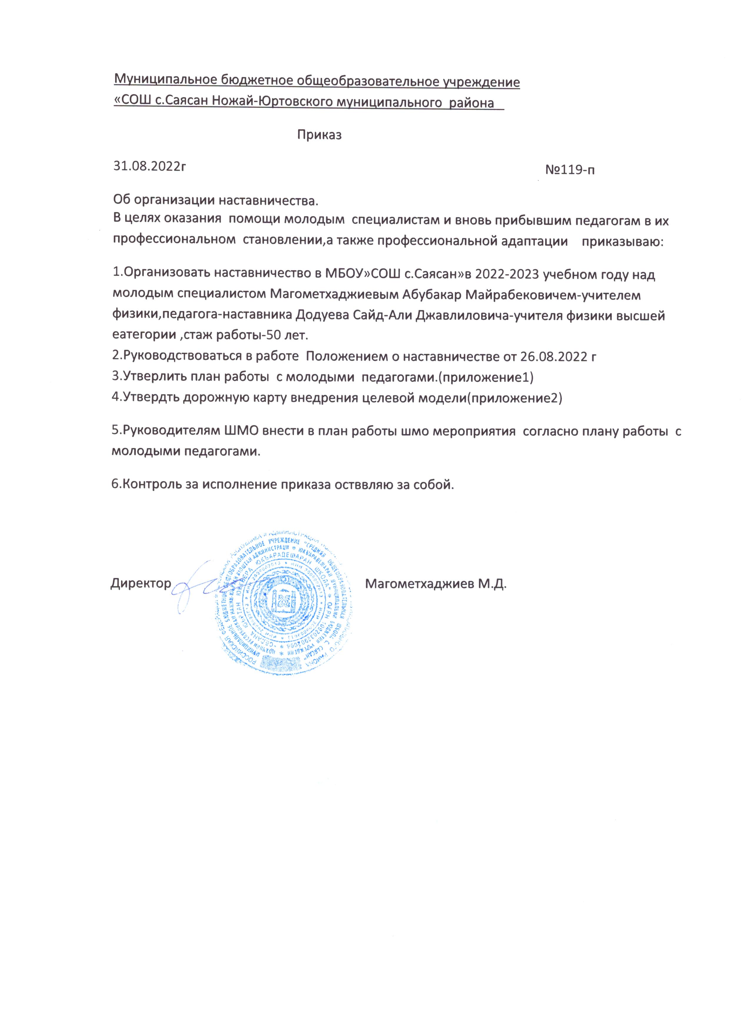 Приказ №136/1-п от 30.10.2020г. О внедрении методологии (целевой модели) наставничества обучающихся для организаций, осуществляющих образовательную деятельность по основным общеобразовательным, дополнительным общеобразовательным программам на территории Ножай-Юртовского муниципального района на 2020 год