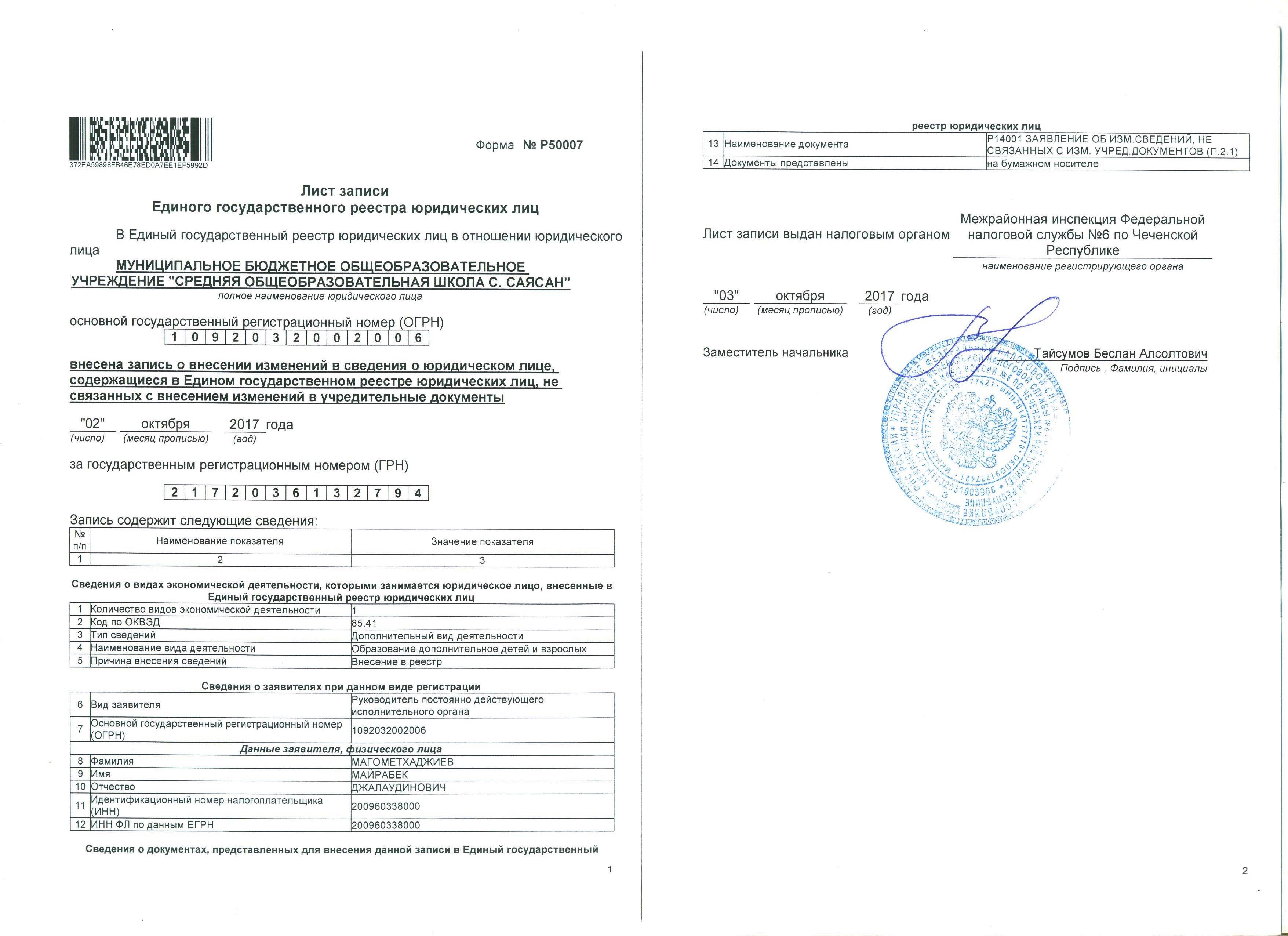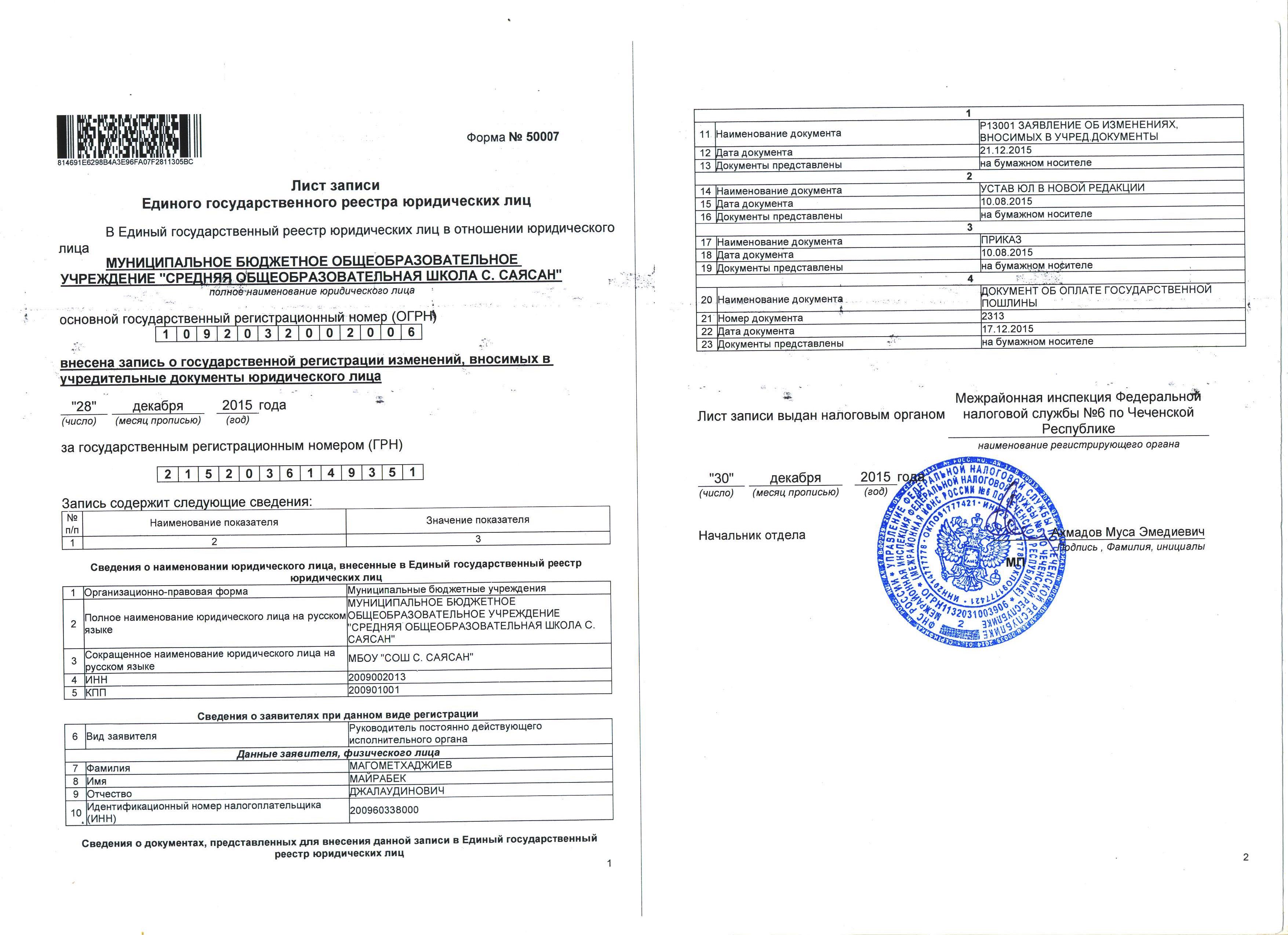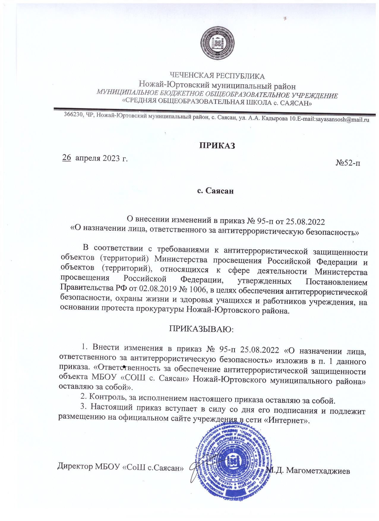 деятельности МБОУ «СОШ с.Саясан»