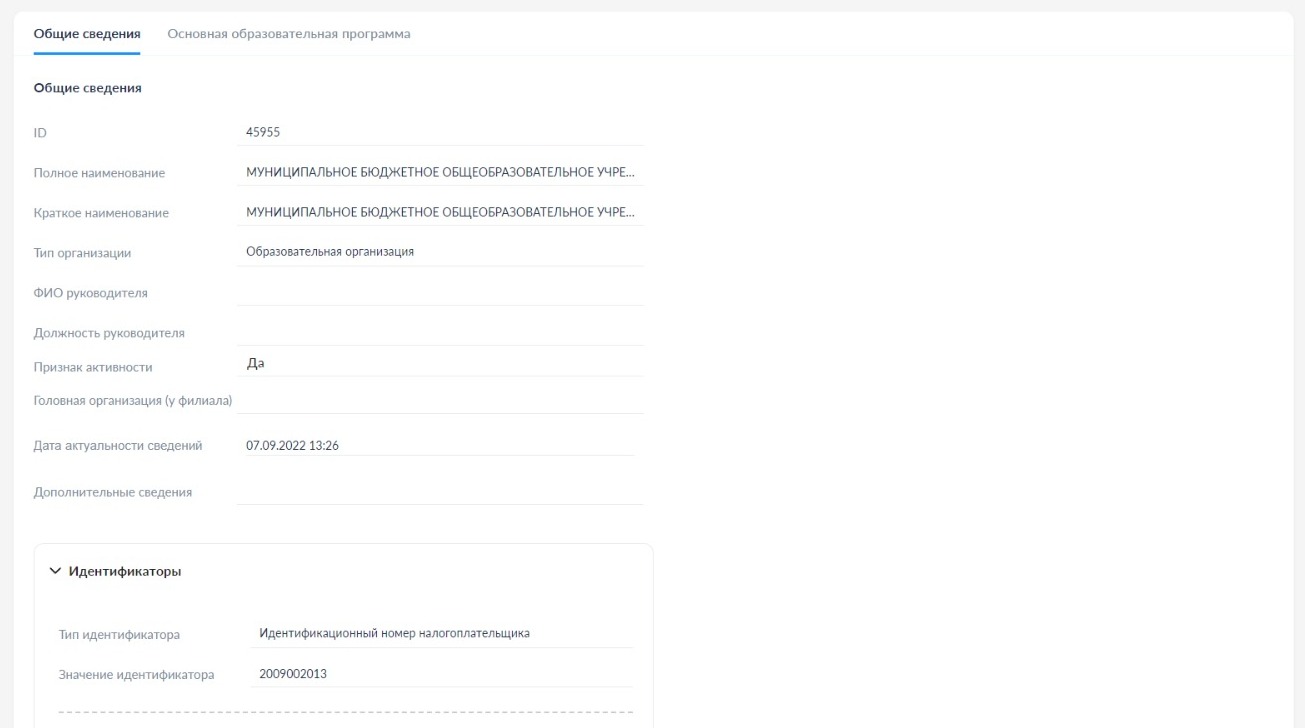 образовательной организации, а также