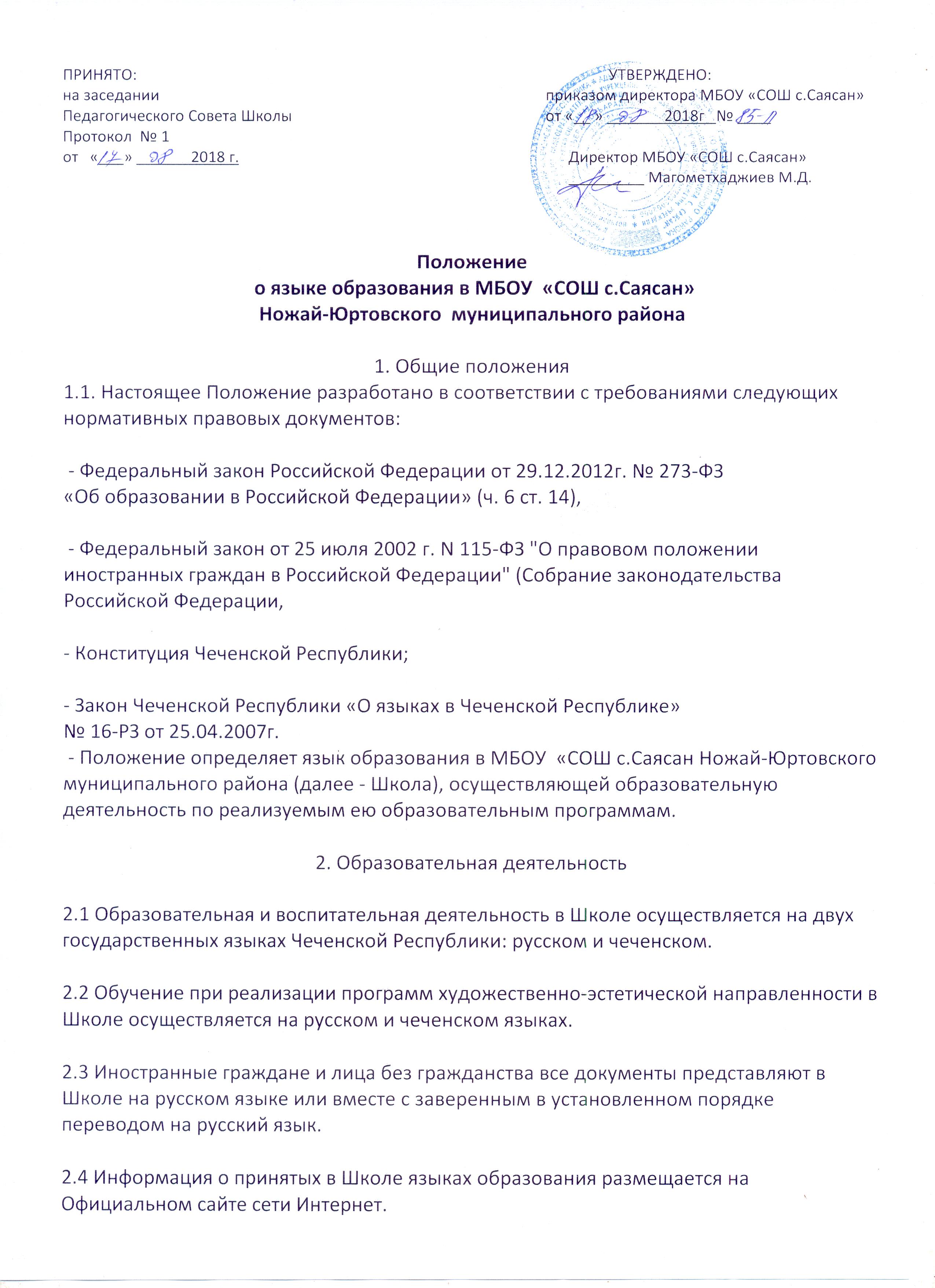 Положение о предоставлении образовательных услуг муниципальным бюджетным общеобразовательным учреждением средней общеобразовательной школой с.Саясан Ножай-Юртовского муниципального района.