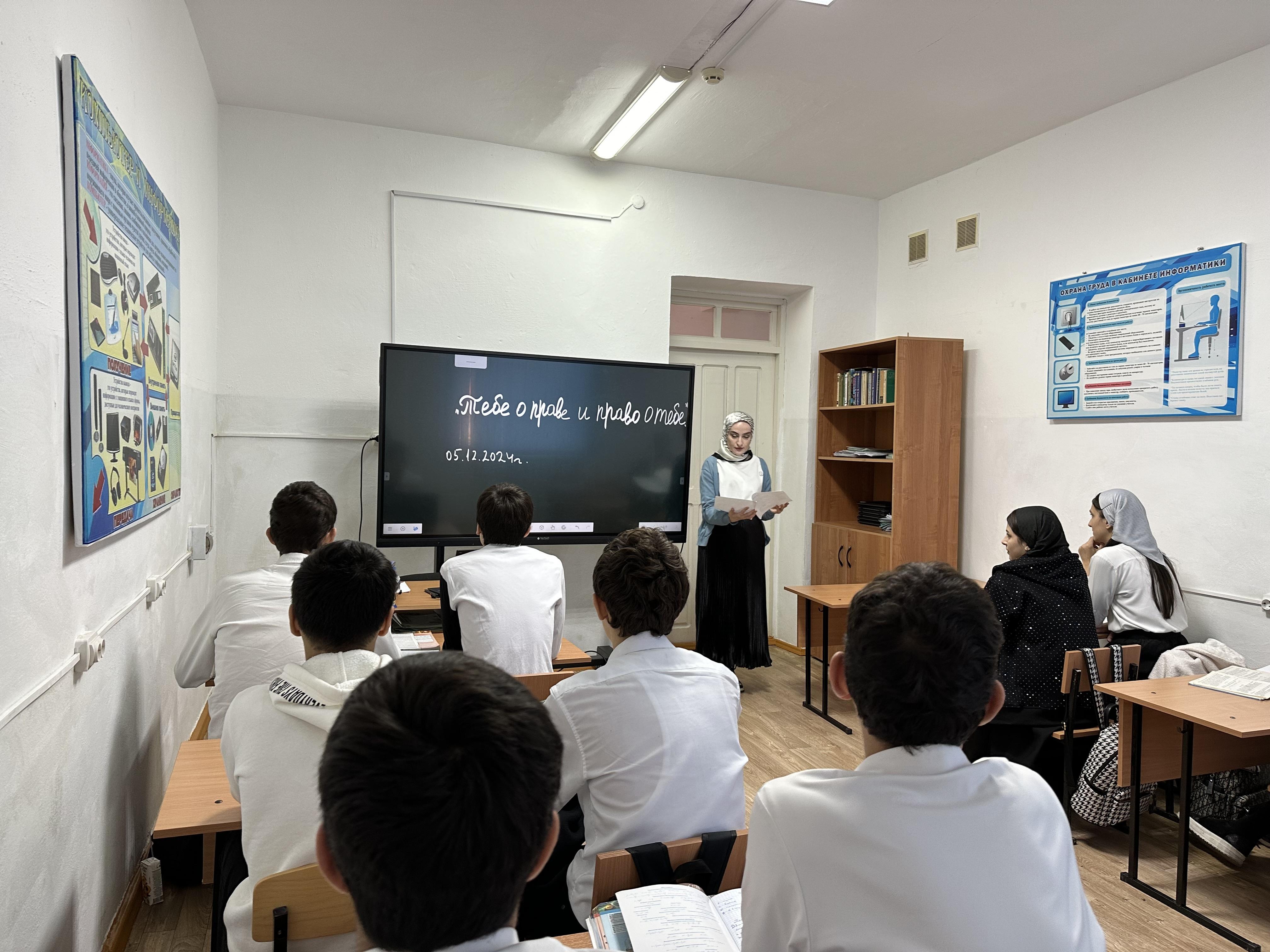 05.12.2024Во взаимодействии с Отделом в Ножай-Юртовском районе УФСБ России по Чеченской Республике,05.12.24г в МБОУ "СОШ с.Саясан" Магометхаджиева Есира провела беседу на тему "Тебе о праве, и право о тебе".