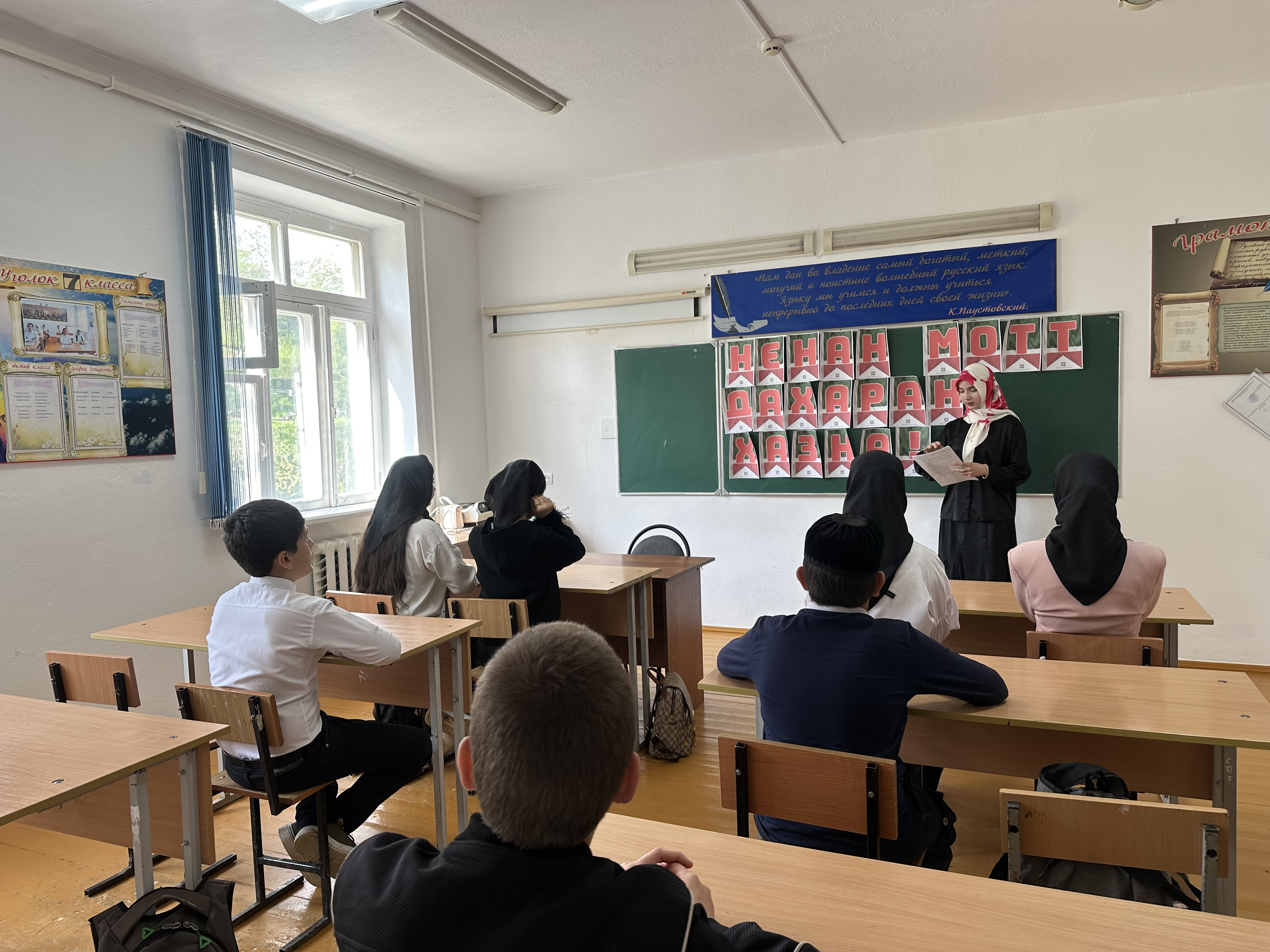 Сегодня, 21.04.2025г в МБОУ «СОШ с.Саясан» провели тематические классные часы на «День чеченского языка»