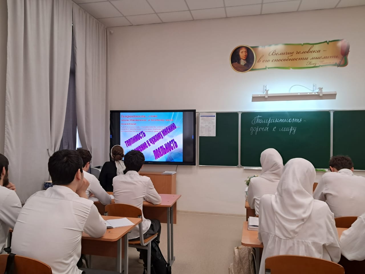 В рамках реализации Единой Концепции духовно-нравственного воспитания и развития подрастающего поколения 03.03.2026 с обучающимися 5б класса был проведен классный час на тему «Толерантность — путь к миру». Целью мероприятия было формирование у учащихся понимания важности толерантности, уважения к различиям между людьми и воспитание миролюбивого отношения в обществе.